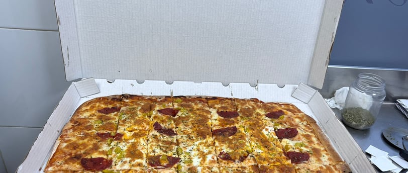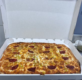 Una bandeja de pizza para eventos y cumpleaños que también puedes venderla en porciones si eres un punto de venta La Fontana.